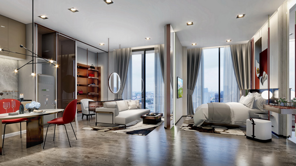 ห้องพักอาศัยตกแต่งครบด้วยเฟอร์นิเจอร์แบบ Fully-Furnished และวัสดุระดับพรีเมียม มอบทุกองค์ประกอบชีวิตที่เหนือกว่า ด้วย Timeless ดีไซน์ที่สะท้อนความหรูหราสง่างาม มาพร้อมความสะดวกสบายครบครัน ดีไซน์ Facade ที่พิถีพิถัน จากการเลือกใช้กระจก EURO Grey ที่โดดเด่นเรื่องความปลอดภัย แข็งแรงทนทาน ช่วยดูดซับความร้อน และลดเสียงรบกวนจากภายนอกอย่างมีประสิทธิภาพ ห้องพักอาศัย มีให้เลือก 4 แบบ ได้แก่