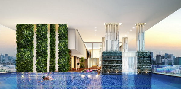 - สระว่ายน้ำทอดตัวขนานกับรถไฟฟ้า