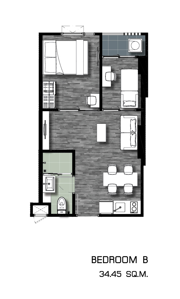 - Type B พื้นที่ใช้สอยขนาด 32.65 ตร.ม.