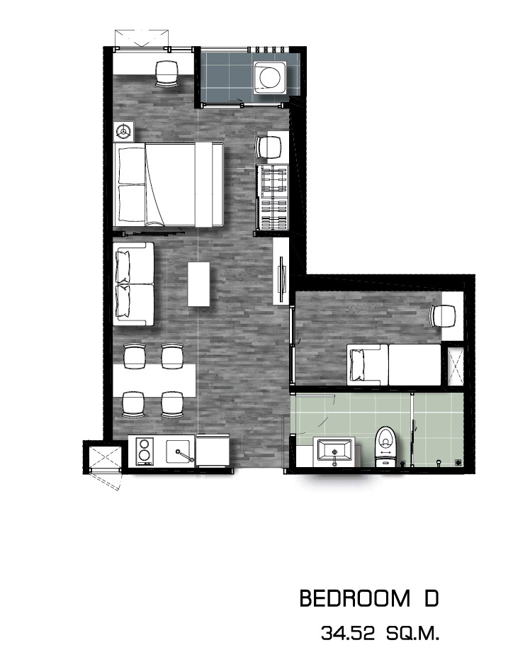 - Type D พื้นที่ใช้สอยขนาด 34.70 ตร.ม.