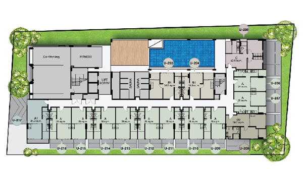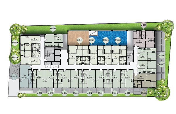 - แบบ 1 ห้องนอน Type A ขนาด 28 ตร.ม.