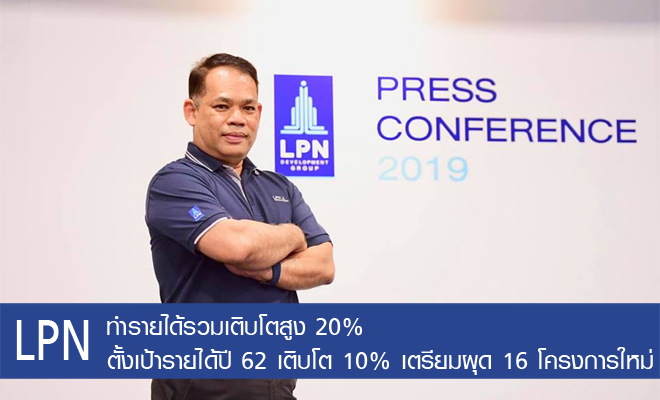 LPN ทำรายได้รวมเติบโตสูง 20% ตั้งเป้ารายได้ปี 62 เติบโต 10% เปิดโครงการใหม่ 16 โครงการ