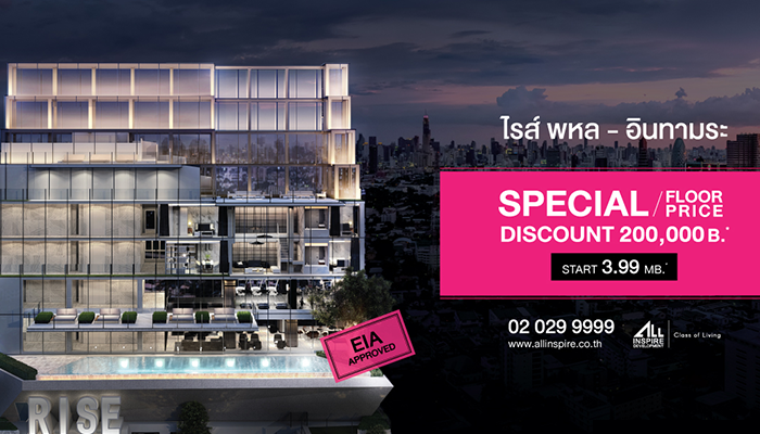 ออลล์ อินสไปร์ จัดโปรคอนโดใหม่ "Rise Phahon-Inthamara Special Floor Special Price" เริ่ม 3.99 ล้าน* รับส่วนลด 200,000 บ.*