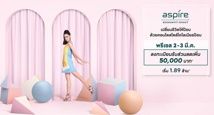 บริษัท เอพี (ไทยแลนด์) จำกัด (มหาชน) หรือ AP Thailand พลิกโฉมคอนโด แอสปาย สุขุมวิท-อ่อนนุช (Aspire Sukhumvit-Onnut) คงคอนเซ็ปต์คอนโดราคาต่ำแสน Prime location ใกล้ Mass Transit BTS สถานีอ่อนนุช และทางด่วน แต่ดีไซน์รูปแบบใหม่ เป็นสไตล์โคโลเนียลป๊อป เปิดตัวราคาเริ่มต้น 1.89 ล้านบาท* หรือเฉลี่ยประมาณ 86,000 บ./ตร.ม.* พร้อมเปิดพรีเซล 2-3 มีนาคม นี้ ที่สำนักงานขาย ลงทะเบียนรับส่วนลดเพิ่ม 50,000 บาท*