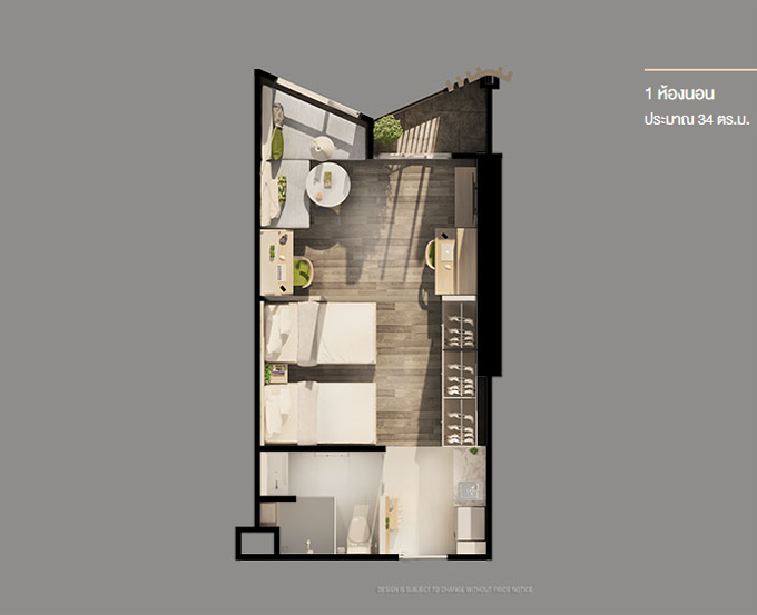- 1 ห้องนอน พื้นที่ใช้สอยขนาด 34 ตร.ม.