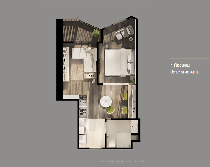 - 1 ห้องนอน พื้นที่ใช้สอยขนาด 40 ตร.ม.
