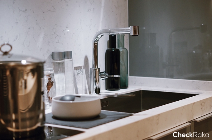 ขณะที่ส่วนกลางนั้นครบถ้วนทั้งฟังก์ชันการใช้งาน และความสวยงามในการใช้ชีวิต อาทิ ล็อบบี้หรู, Business Lounge, Swimming Pool, Fitness, ที่จอดรถใต้ดินแบบ Automatic Underground Car Parking ถึง 78 คัน หรือ 150% ของจำนวนยูนิตทั้งหมด และการรักษาความปลอดภัยตลอด 24 ชั่วโมง ส่วนสเปควัสดุที่คัดสรรมาให้นั้นล้วนเป็นวัสดุอิมพอร์ตระดับไฮเอนด์ อาทิ ชุดครัวจากพอเกนโพล (Poggenpohl) ชุดเครื่องครัวแบรนด์ชั้นนำของโลกที่มีประสบการณ์และประวัติมายาวนานนับร้อยปี เคียงคู่มาพร้อมเฟอร์นิเจอร์และสุขภัณฑ์แบรนด์ดัง อย่าง Siemens, Dornbracht, Blanco และ Villeroy & Boch แบรนด์คุณภาพเยี่ยมจากเยอรมัน พร้อมก๊อกน้ำและอุปกรณ์ภายในห้องน้ำ ดีไซน์สวยงามและคุณภาพสูงจากแบรนด์ Gessi ซึ่งนำเข้าจากประเทศอิตาลี เป็นต้น