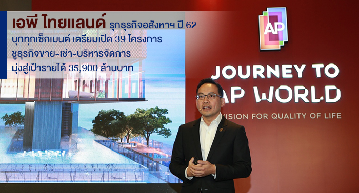 เอพี ไทยแลนด์ ปี 62 บุกทุกเซ็กเมนต์ เตรียมเปิด 39 โครงการ ชูธุรกิจขาย-เช่า-บริหารจัดการ