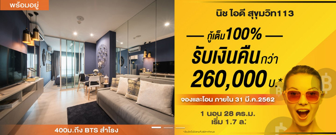 โปรโมชั่น : พิเศษ Fully Furnished Package เฟอร์ครบ เครื่องใช้ไฟฟ้าครบ มูลค่าสูงสุด 200,000 บาท*