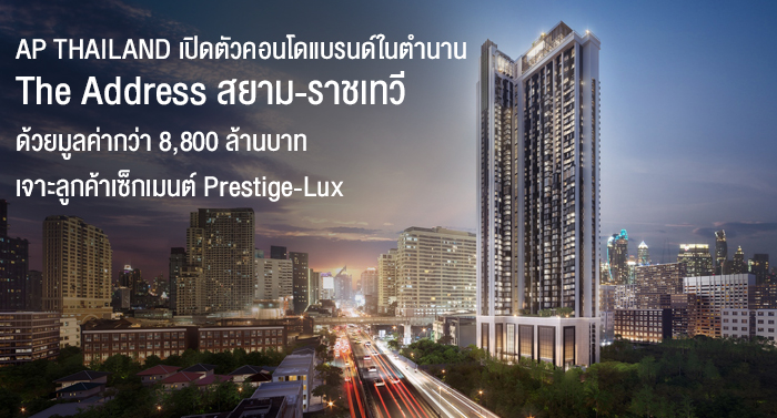 AP เปิดตัวคอนโด "The Address สยาม-ราชเทวี" มูลค่ากว่า 8,800 ลบ. เจาะลูกค้าเซ็กเมนต์ Prestige-Lux