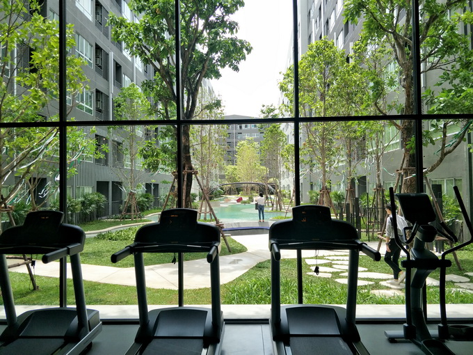 จากห้องฟิตเนสมองออกไปจะเห็นวิวสระว่ายน้ำ