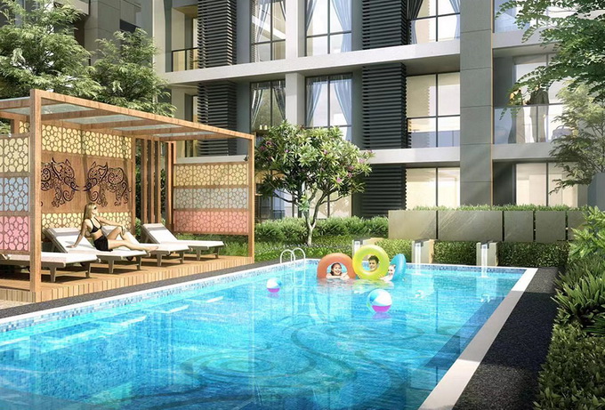 ภาพจำลองบรรยากาศบริเวณสระว่ายน้ำบนชั้น 5