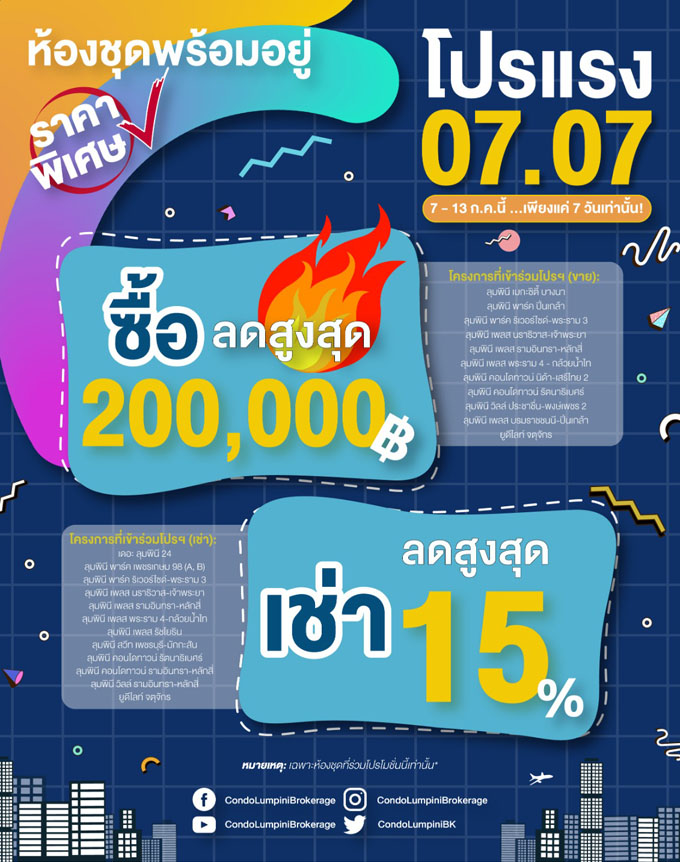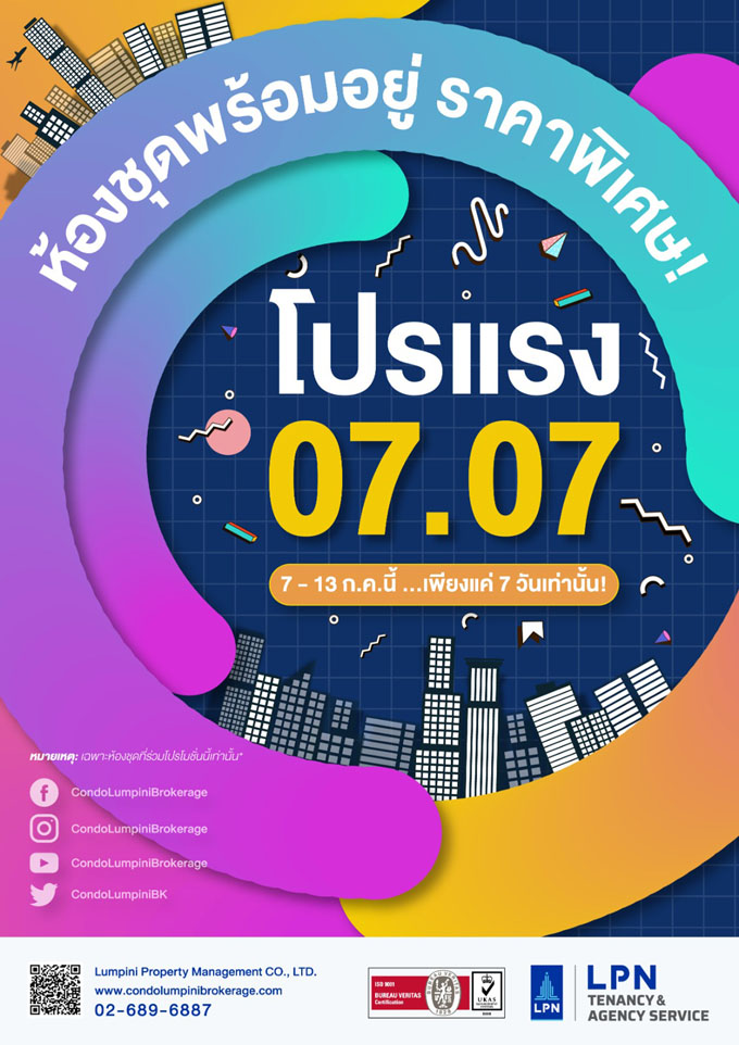 LPP ในเครือ LPN จัดให้ ส่งโปรแรง 07.07 7 วันเท่านั้น ซื้อ ลดสูงสุดสองแสน เช่า ลดสูงสุด 15%
