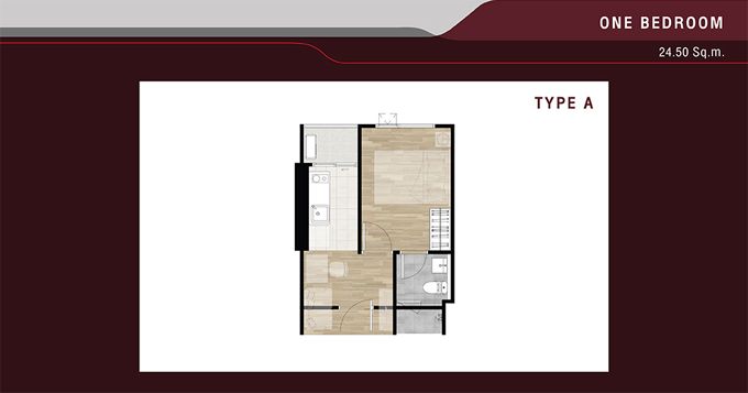 - 1 Bedroom Type A พื้นที่ใช้สอยขนาด 24.50 ตร.ม.