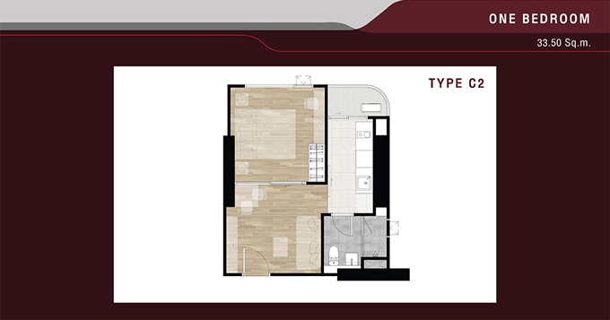 - 1 Bedroom Type C2 พื้นที่ใช้สอยขนาด 33.50 ตร.ม.
