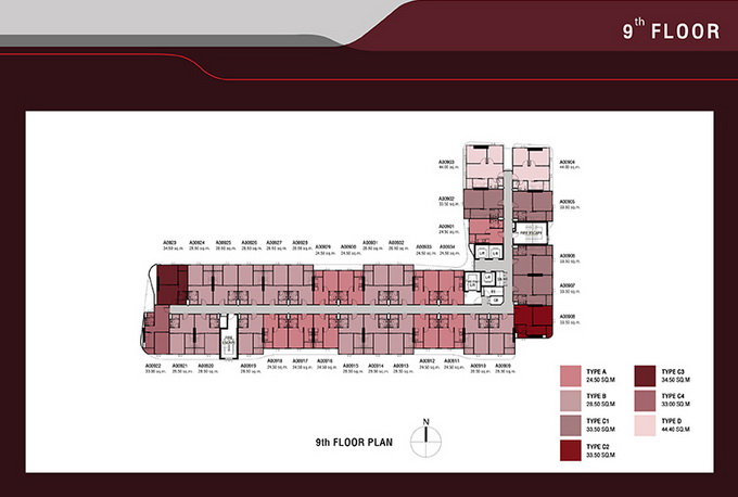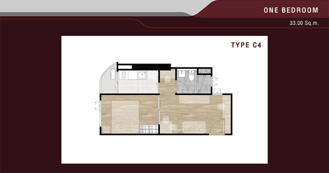 - 1 Bedroom Type C4 พื้นที่ใช้สอยขนาด 33.00 ตร.ม.