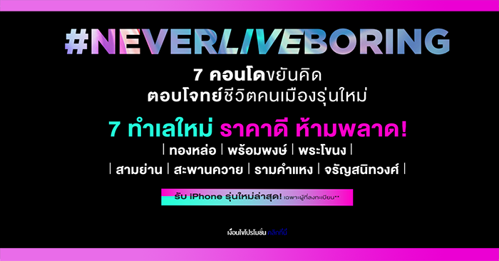 บริษัท อนันดา ดีเวลลอปเม้นท์ จำกัด (มหาชน) ตอบโจทย์คนรุ่นใหม่ด้วยแนวคิด "คิด...เพื่อชีวิตคนเมือง" เปิดตัวคอนโดใหม่พร้อมคอนเซ็ปต์ #NEVERLIVEBORING "คอนโดขยันคิด ตอบโจทย์ชีวิตคนเมืองรุ่นใหม่" โดยเน้นทำเลใกล้รถไฟฟ้า 7 ทำเล ดังนี้ ทองหล่อ, พร้อมพงษ์, พระโขนง, สามย่าน, สะพานควาย, รามคำแหง และ จรัญสนิทวงศ์