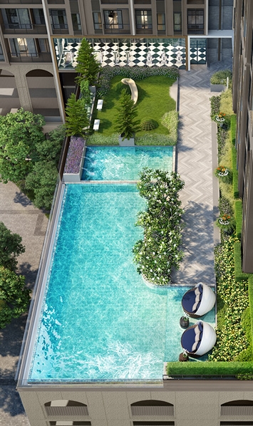 "MODERN COLONIAL" ที่สามารถจับต้องได้ สอดแทรกด้วยพื้นที่สีเขียว (POCKET GARDEN) ที่กระจายไปยังชั้นต่างๆ ด้านสิ่งอำนวยความสะดวก ได้แก่ Swimming pool , Kids', pool & Jacuzzi, Fitness, Sauna, Lobby, Meeting Room, Playground, Co-Living Space, Co-Working Space, Roof Garden, Digital Door Lock, Home Automation, Smart Kitchen และ EV Charger