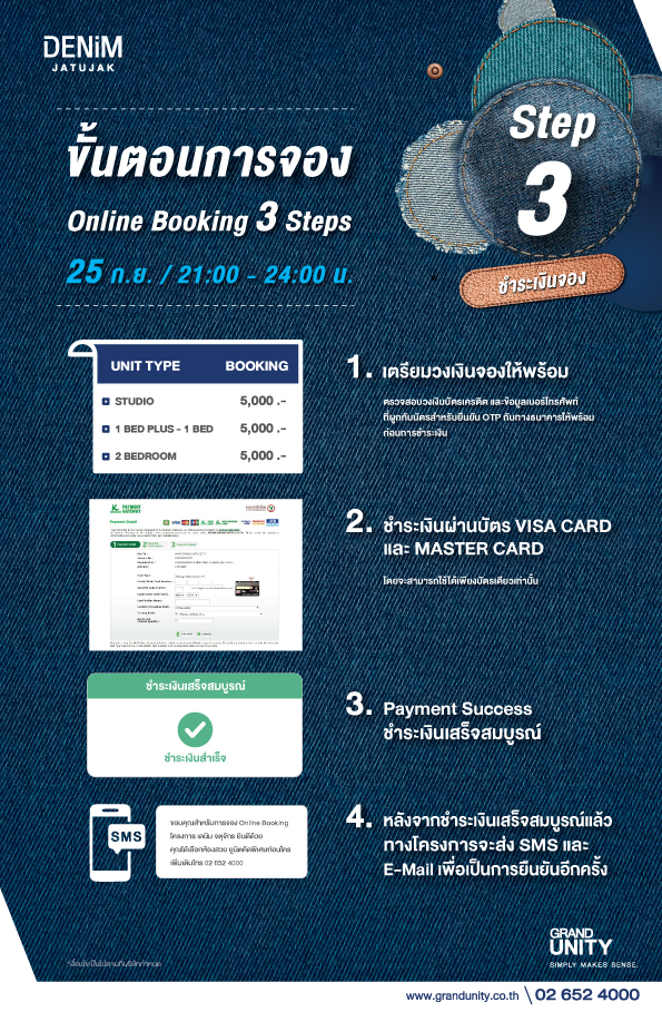 จองพร้อมกันผ่านทาง Online Booking ครั้งแรก ในวันที่ 25 กันยายนนี้ ตั้งแต่เวลา 21.00-24.00 น. เท่านั้น โดยจะเปิดยูนิตให้ได้จองกันทั้งหมด 4 แบบ ได้แก่