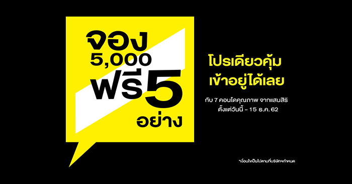 12 พ.ย. 62 6,932แสนสิริ จัดโปรคอนโด 7 โครงการ ราคาไม่เกิน 3 ล้าน "จอง 5,000 ฟรี 5 อย่าง" ถึง 15 ธ.ค.นี้
