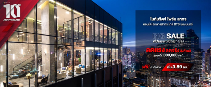 โครงการ ไนท์บริดจ์ ไพร์ม สาทร ANNIVERSARY BIG SALE จัดโปรแรงแซงมาตรการรัฐ ลดแรง ลดจริงส่งท้ายปีสูงสุด 2,000,000 บาท ฟรี! ค่าใช้จ่าย ในราคาเริ่มต้น 3.89 ล้านบาท