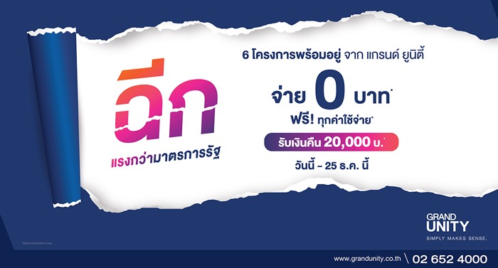 "แกรนด์ ยูนิตี้" ฉีกทุกราคาและทุกเงื่อนไข ดัน 6 โครงการพร้อมอยู่ จ่าย 0 บาท* เข้าอยู่ได้ทันที
