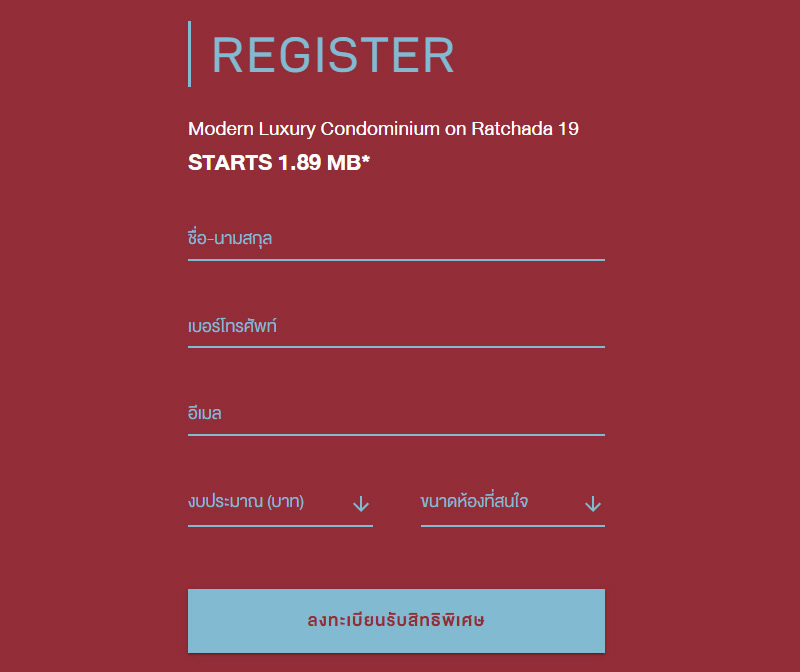 ห้องแต่งครบ ราคาเริ่มต้น 1.89 ล้านบาท ท่านใดที่สนใจสามารถลงทะเบียนเพื่อรับข้อมูล หรือลงทะเบียนรับส่วนลดสูงสุด 200,000 บาท ได้ที่นี่