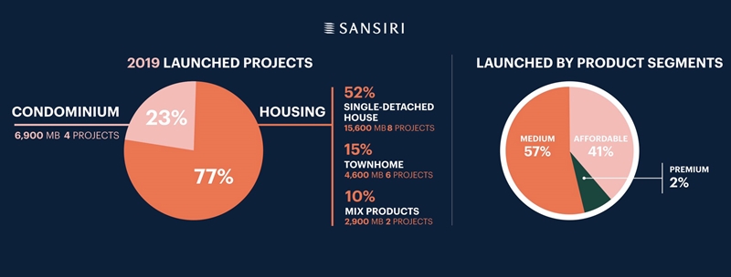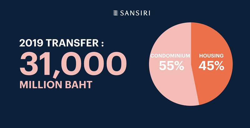 "ยอดขายกว่า 62% ของปี 2562 มาจากความสำเร็จของยอดขายแนวราบในปีที่ผ่านมา อาทิ แบรนด์ทาวน์โฮม "สิริ เพลส", แบรนด์บ้านเดี่ยว "บุราสิริ", "คณาสิริ" ราชพฤกษ์-346 และ "เศรษฐสิริ" จรัญฯ - ปิ่นเกล้า 2 ขณะที่กลุ่มคอนโดมิเนียม ได้รับการตอบรับที่ดีจากการโอนคอนโดมิเนียมที่สร้างเสร็จพร้อมโอน อาทิ เดอะ ไลน์ สุขุมวิท 101, เดอะ ไลน์ พหล-ประดิพัทธ์, เดอะ เบส สุขุมวิท 50, เดอะ เบส เพชรเกษม, ทากะ เฮาส์, ดีคอนโด แคมปัส โดม รังสิต และดีคอนโด หาดใหญ่ นอกจากนี้ แสนสิริยังคงมุ่งมั่นพัฒนาโครงการคุณภาพ ด้วยมาตรฐานการก่อสร้าง วัสดุที่เลือกใช้ และนวัตกรรมเพื่อการอยู่อาศัย ซึ่งทำให้แบรนด์ และโปรเจกต์ต่างๆ ที่นำเสนอมีความแข็งแกร่ง และมีเอกลักษณ์ที่น่าสนใจต่อกลุ่มลูกค้าตลอดมา และประสบความสำเร็จด้านผลประกอบการในปี 2562"