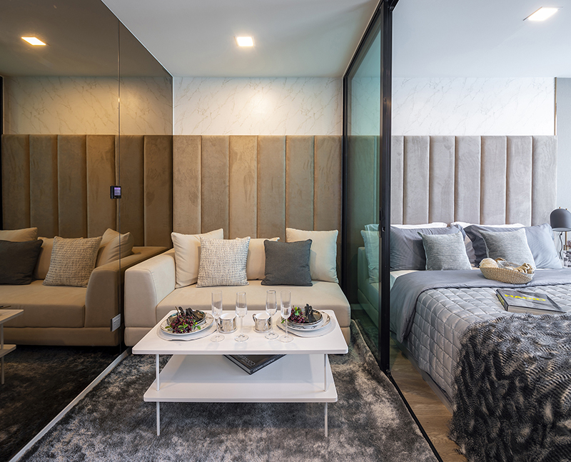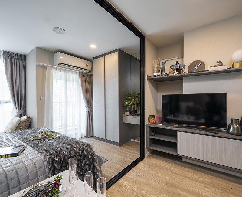 - ขนาด 1 ห้องนอน พื้นที่ตั้งแต่ 25 - 26 ตารางเมตร จำนวน 299 ยูนิต