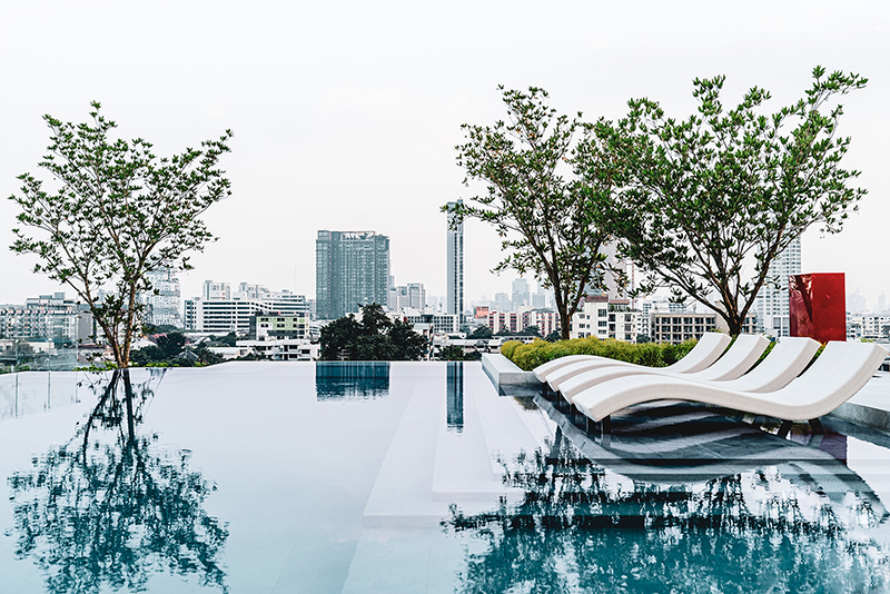 สระว่ายน้ำที่ชั้นบนสุดของโครงการ