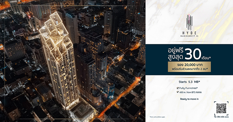 HYDE Sukhumvit 11 ปล่อยโปร! เด็ดราคาดีๆ จองวันนี้อยู่ฟรี!! สูงสุด 30 เดือน ลดมากถึง 2 ล้านบาท*