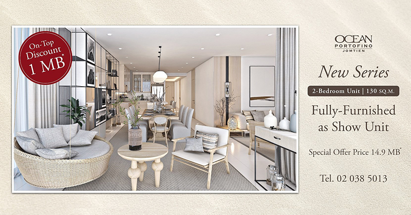 โอเชี่ยน พรอพเพอร์ตี้ เตรียมข้อเสนอสำหรับบ้านหลังที่ 2 "โอเชี่ยน พอร์โตฟิโน่ จอมเทียน"