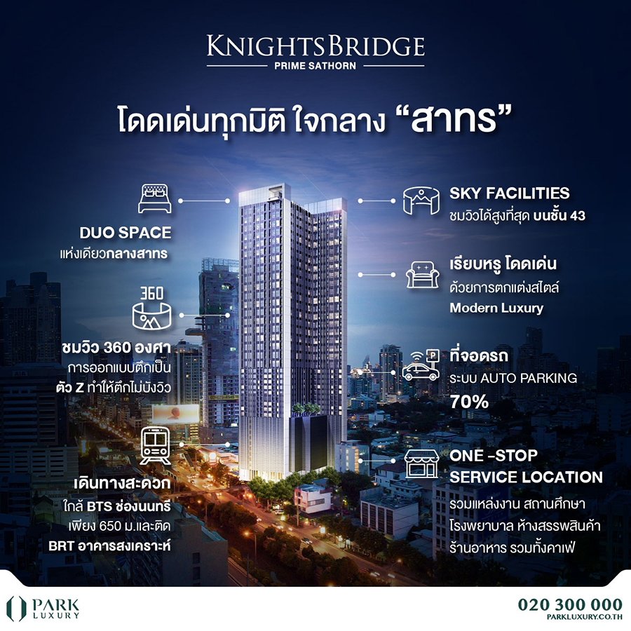 ไนท์บริดจ์ ไพร์ม สาทร (KnightsBridge Prime Sathorn) อีกหนึ่งโครงการที่เพิ่งสร้างเสร็จพร้อมอยู่ของ พาร์ค ลักชัวรี่ ผู้พัฒนาคอนโดมิเนียมลักชัวรี่ ในเครือ ออริจิ้น พร็อพเพอร์ตี้ ถือเป็นคอนโดมิเนียมแบบ