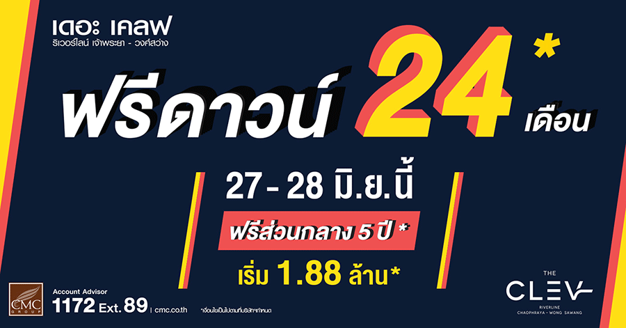สอบถามข้อมูลเพิ่มเติมที่ www.CMC.co.th/the-clev-wongsawang/register หรือ Account Advisor : 1172 ต่อ 89