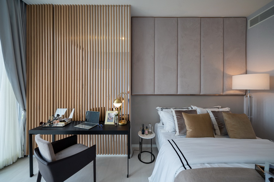 ในส่วนของการดีไซน์ มาพร้อมความพิถีพิถันในทุกองค์ประกอบและใส่ใจในทุกรายละเอียด เริ่มตั้งแต่ความสวยงามของตัวอาคาร ที่เน้นกระจกในการตกแต่งเพื่อความพรีเมียมและโดดเด่น ส่วนภายในห้องพักอาศัยยังคงรักษาความเป็นมาตรฐานของแกรนด์ ยูนิตี้ ผนวกกับการเลือกสรรวัสดุคุณภาพ ไม่ว่าจะเป็น Safety Glass หรือกระจกนิรภัย ทั้งโครงการและกระจกทุกบานในห้อง การติดตั้ง WC Pod หรือห้องน้ำสำเร็จรูปที่ผ่านการตรวจสอบคุณภาพจากทางโรงงานผู้ผลิต ง่ายต่อการดูแล ซ่อมแซมได้โดยไม่รบกวนผู้พักอาศัยห้องด้านล่าง และ Private Balcony หรือการออกแบบระเบียงให้เหมาะสมกับการใช้งานจริง และให้ความเป็นส่วนตัว อีกทั้ง ยังเพิ่มฟังก์ชันดีไซน์ที่ตอบโจทย์การใช้ชีวิตมากยิ่งขึ้น ด้วยห้องชุดเพดานสูง 3 เมตร พร้อมกระจกหน้ากว้างเต็มบาน ที่ทำให้มองเห็นวิวภายนอกได้กว้างยิ่งขึ้น ตู้เสื้อผ้า Built-in ขนาดใหญ่ให้ฟังก์ชันการใช้งานเสมือน Walk-in closet รองรับไลฟ์สไตล์ของผู้ที่ชื่นชอบการแต่งตัว ทำให้มีพื้นที่ในการจัดสรรเสื้อผ้าได้มากขึ้น Kitchen Island เคาเตอร์ครัววัสดุคุณภาพสำหรับผู้ที่รักในการทำอาหารที่มีมาให้ในห้องชุดพักอาศัยรูปแบบ 1 Bedroom Flexi