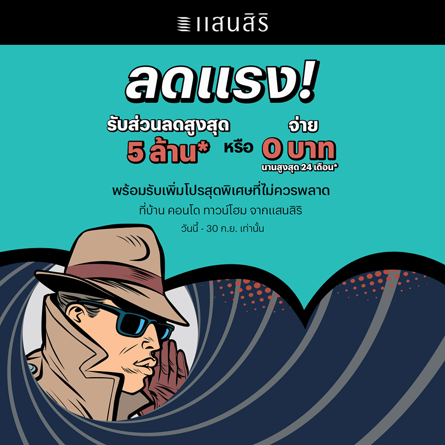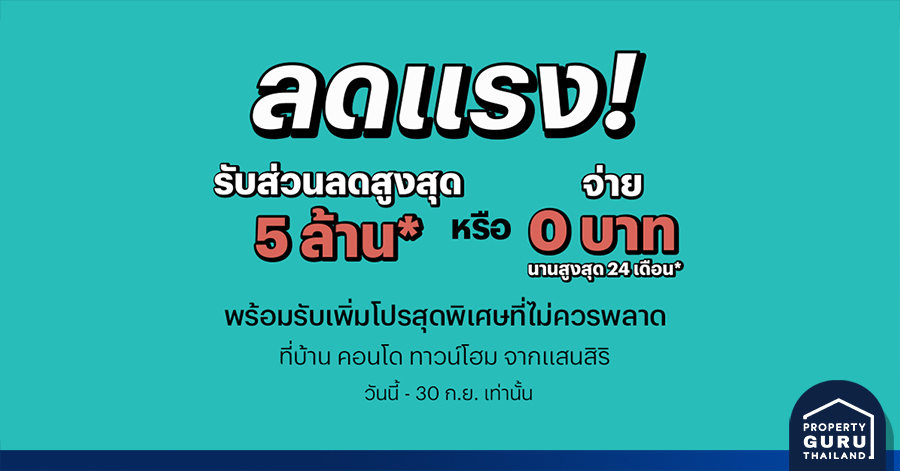 แสนสิริ ส่งแคมเปญ ลดแรง สูงสุด 5 ล้าน จ่าย 0 บาท นานสูงสุด 24 เดือน*