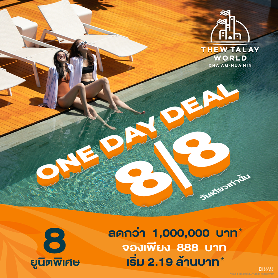 ทิวทะเลเวิลด์ ส่งโปรโมชั่น 8/8 ONE DAY DEAL จอง 888 บาท กับ 8 ยูนิตพิเศษ 8 ส.ค. 2563 วันเดียวเท่านั้น