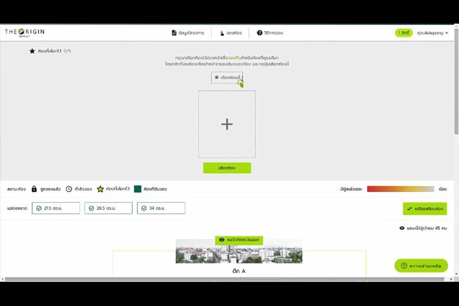 ที่ผ่านมา โครงการที่มีสำนักงานขาย มักจะมีห้องตัวอย่างให้ดู มีแบบห้องให้ดู บอกทิศบอกทาง แต่เราก็มักจะนึกไม่ออกอยู่ดี ว่าวิวทิศนั้นๆ ของห้องจะเป็นยังไง ออริจิ้นดูเหมือนจะรู้ Pain Point ตรงนี้ เลยออกแบบฟังก์ชันการเลือกห้อง ให้ทุกคนสามารถเลือกเปรียบเทียบห้องที่สนใจได้สูงสุดถึง 5 ห้อง และยังสามารถเลือกดูภาพวิวของห้องทิศต่างๆ ซึ่งถ่ายจากโดรนไว้เรียบร้อย จะได้ประเมินกันถูกว่าทิศไหน จะได้วิวยังไง แถมยังสามารถเพลิดเพลินกับการ Customize เฟอร์นิเจอร์แต่งห้องเพิ่มเติม ให้เหมาะกับความต้องการของตัวเองได้