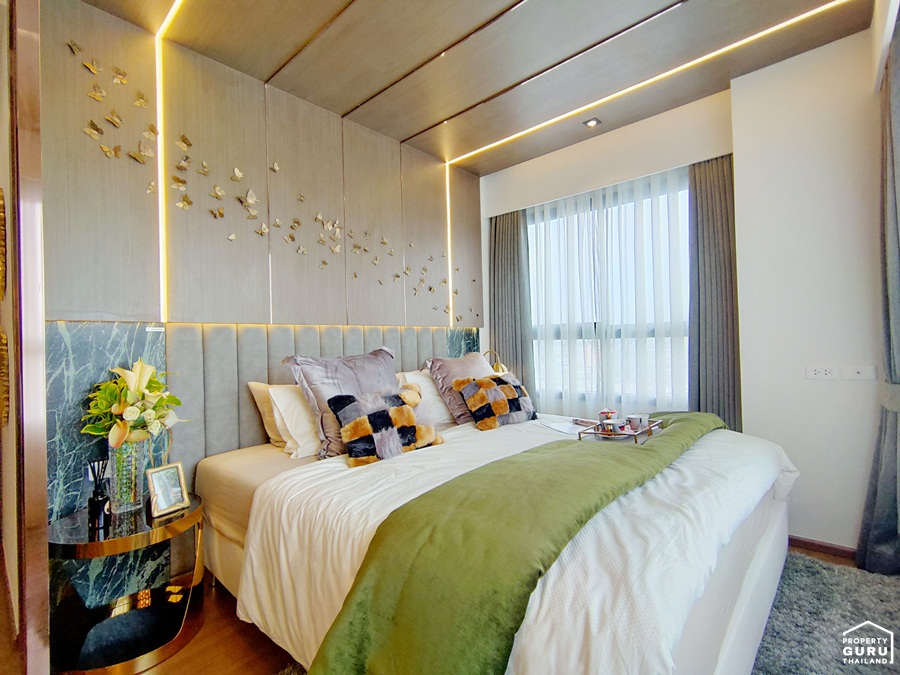 พื้นที่ห้องนอนใหญ่ เนื่องจากห้องนี้เป็นห้องมุม จึงมีหน้าต่าง 2 ฝั่งเปิดรับแสงธรรมชาติได้อย่างเต็มที่