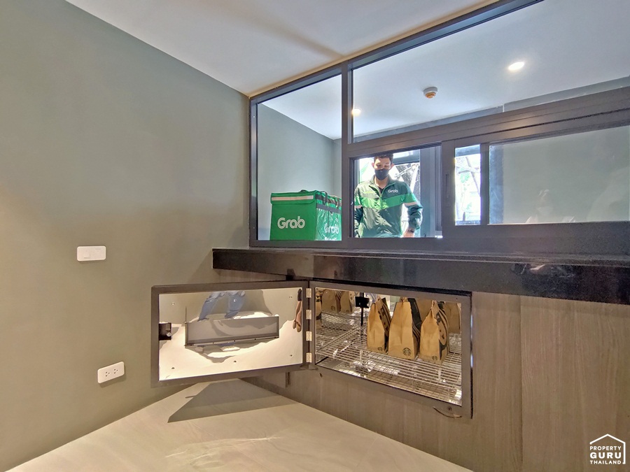 ห้องสำหรับส่งอาหาร มีระบบฆ่าเชื้อโรคด้วย UV ก่อนที่ลูกบ้านจะรับอาหารจากคนส่งอาหาร