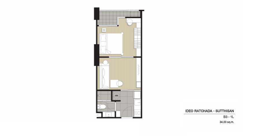 ห้องแบบ 1 ห้องนอน New Series ขนาด 34 ตร.ม.