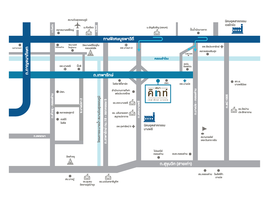 เสนา คิทท์ เทพารักษ์-บางบ่อ (Sena Kith Thepharak-Bangbo) คอนโดมิเนียมที่เข้ามาเติมเต็มและตอบโจทย์ทุกมิติการอยู่อาศัยและเพื่อลงทุน บนพื้นที่โครงการกว่า 5-3-35.2 ไร่ โดดเด่นด้วยทำเลศักยภาพองค์ประกอบครบหนึ่งเดียวย่านเทพารักษ์-บางบ่อทำเลที่รายล้อมไปด้วยสิ่งอำนวยความสะดวกที่เพียบพร้อมด้วยแหล่งงาน ใกล้นิคม 3 แห่งคือ นิคมบางพลี นิคมบางปู และนิคมเวลโกร์ว ห้างสรรพสินค้าและแหล่งช้อปปิ้ง อาทิ เทสโก้ โลตัส ,ซิตี้พาร์ค ,บิ๊กซี บางพลี มาร์เก็ตวิลเลจ สุวรรรณภูมิ ,เมกาบางนา และโรงพยาบาลบางนา, โรงพยาบาลจุฬารัตน์ ,โรงพยาบาลบางบ่อ, โรงพยาบาลจักรีนฤบดินทร์ สถาบันการศึกษาสำคัญ อาทิ โรงเรียนบดินเดชา, โรงเรียนเกวลิน รวมไปถึงความเจริญที่กำลังจะเข้ามาย่านนี้ของรถไฟฟ้าในอนาคตมี 2 เส้นทาง 2 สาย คือสายสีเหลืองจากลาดพร้าว-สำโรง และสายสีเขียวส่วนต่อขยายแบริ่ง-สมุทรปราการในอนาคตจะมีส่วนต่อขยายจากเคหะสมุทรปราการไปถึงบางปูเพิ่มอีก 4 สถานี ระยะทาง 7 กิโลเมตร มีสถานีบางปู, สถานีศรีจันทร์ประดิษฐ์, สถานีเมืองโบราณ และสถานีสวางคนิวาส เป็นต้น