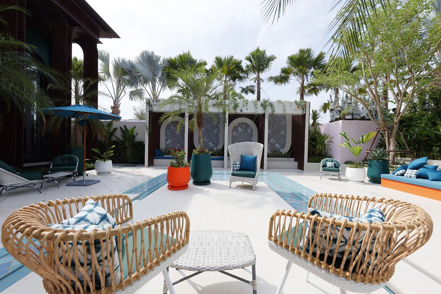 มุมนั่งเล่นบริเวณสวนริมสระว่ายน้ำ