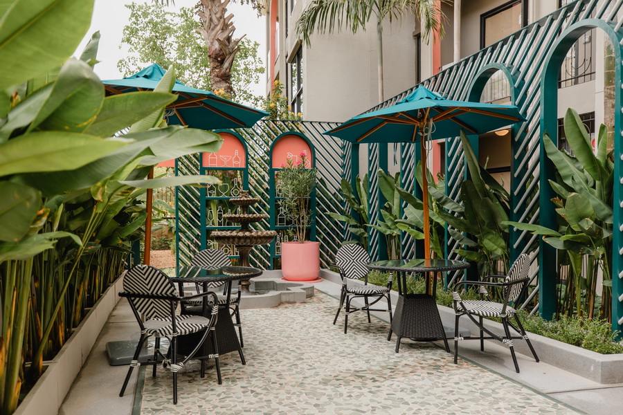 บางส่วนของอาคารตกแต่งด้วยโทนสีชมพูเพิ่มความสดใส