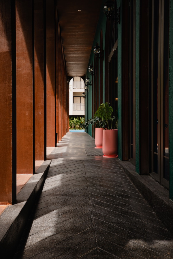 โถงทางเดินที่เชื่อมต่อระหว่างล็อบบี้ และสระว่ายน้ำ