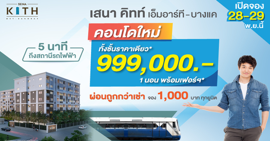 SENA เปิดคอนโดราคาต่ำล้าน ใกล้รถไฟฟ้า 2 ทำเลพร้อมกัน ย่านบางแคและพหลโยธิน-คูคต 28-29 พ.ย. 63