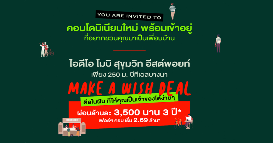พบกันที่งาน Make a wish Festival วันที่ 4 - 6 ธันวาคม 2563 นี้ตั้งแต่เวลา 15.00 - 21.00 น.ที่โครงการไอดีโอ โมบิ สุขุมวิท อีสต์พอยท์ โครงการ Iconic แห่งใหม่ย่านบางนา เพียง 250 เมตรสถานีบีทีเอสบางนา ทางออก 3 หรือจอดรถได้ภายในงาน สอบถามข้อมูลเพิ่มเติม ได้ที่ Facebook: