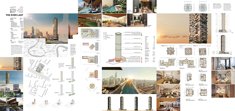 นางสาวกัญญาณัฐ แจ่มใส ชื่อผลงาน The ever last แรงบันดาลใจของผลงานมาจากการสร้าง Green Building เสริมสร้างสุขภาพทั้งคนและสิ่งแวดล้อม และเน้นสวนที่มีขนาดใหญ่ข้างหน้า และสวนลอยฟ้าด้านหลังด้วยส่วนสูงต่างกันทั้งหมด 20 กว่าเมตร และทำการเชื่อมตั้งแต่ชั้นล่างมาถึงชั้นบน สามารถได้ทั้งวิ่งออกกำลังกายและเดินเล่นพักผ่อน