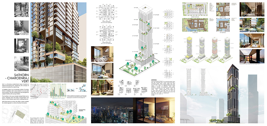 นางสาวชนม์พืช ศรีพงษ์ธนากุล ชื่อผลงาน Vert แรงบันดาลใจของผลงานมาจากเรื่องราวของ New Normal การออกแบบจึงคำนึงถึงโครงสร้างอาคาร ทิศทางลม มีการระบายอากาศ ทำให้ตัวอาคารแต่ละชั้นมีจำนวนผู้พักอาศัยน้อยลง และเพิ่มพื้นที่สีเขียวตามรอยของชั้นต่างๆ