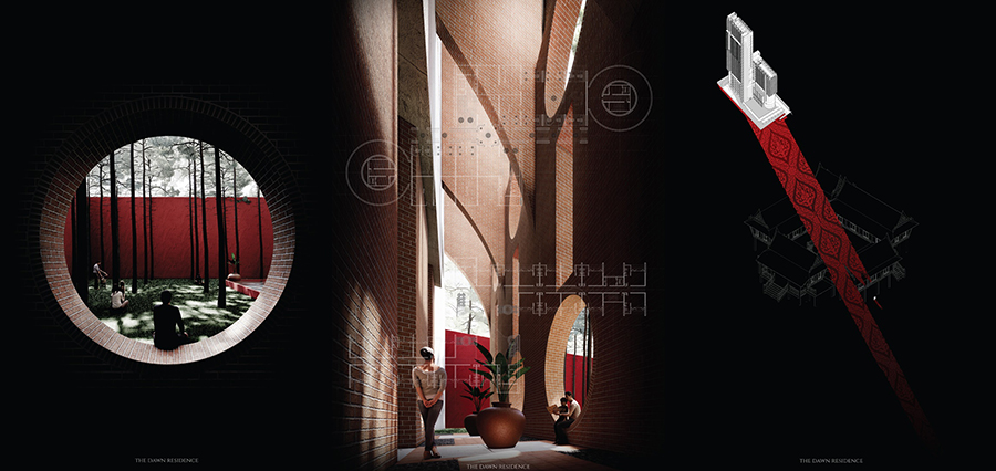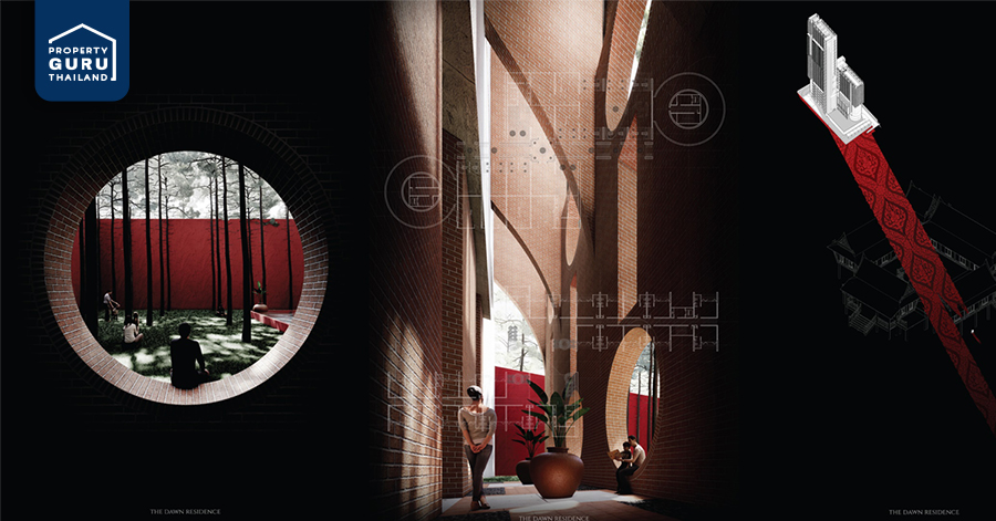 นายนพรุจ สุกใส ชื่อผลงาน THE DAWN RESIDENCE แรงบันดาลใจของผลงานมาจาก การศึกษาสถาปัตยกรรมตะวันออก ที่เหมาะกับวิถีชีวิตและสภาพอากาศ Tropical ในปัจจุบัน ที่สอดคล้องกับการคำนวณพื้นที่ขาย